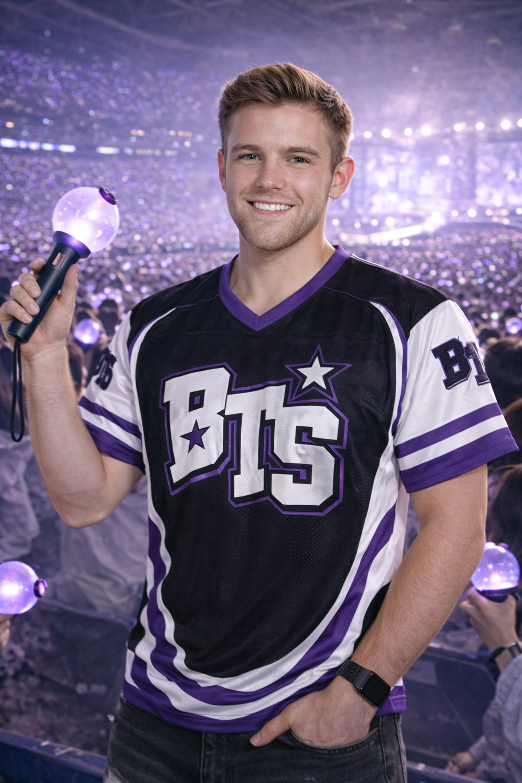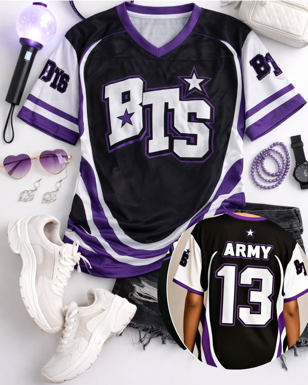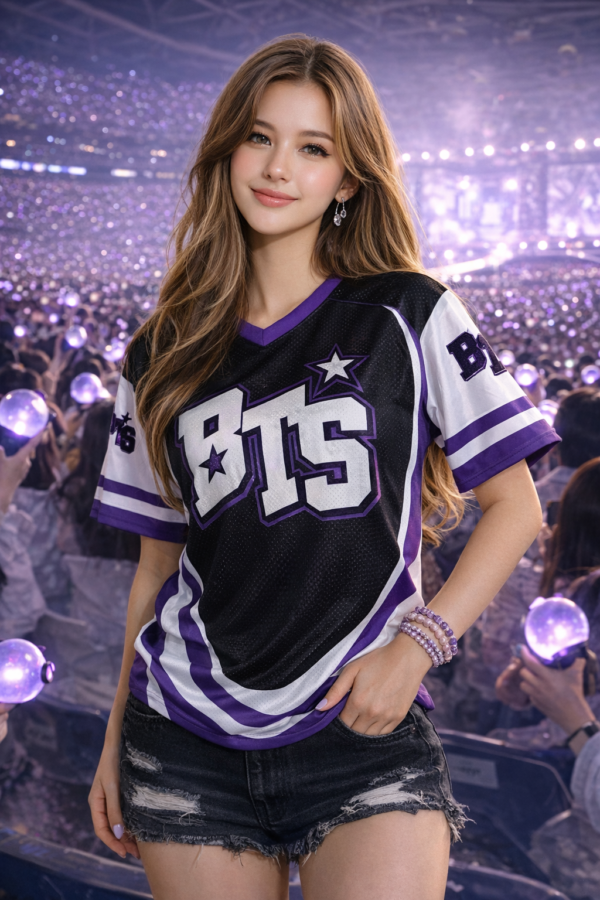 Elevate your BTS World Tour Concert with our all-over print football jersey – a premium option for sellers wanting to offer high-quality custom football jerseys. Designed with full-color sublimation on Bird’s Eye Pique fabric for vibrant looks and lasting wear.
